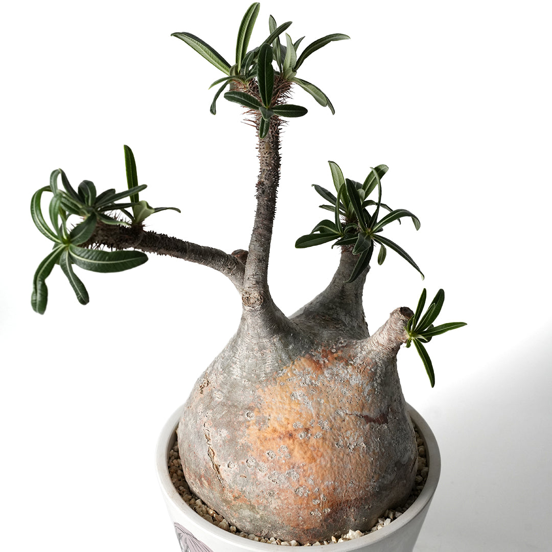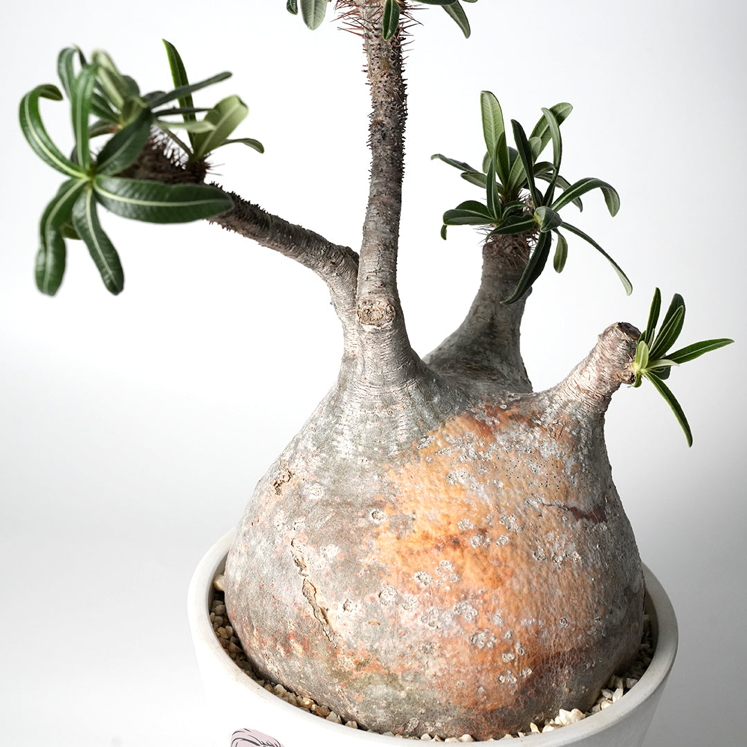 マダガスカル・アフリカを中心に自生する、丸く膨らんだ塊根と細く伸びた枝のバランスがユニークな塊根植物(コーデックス)。